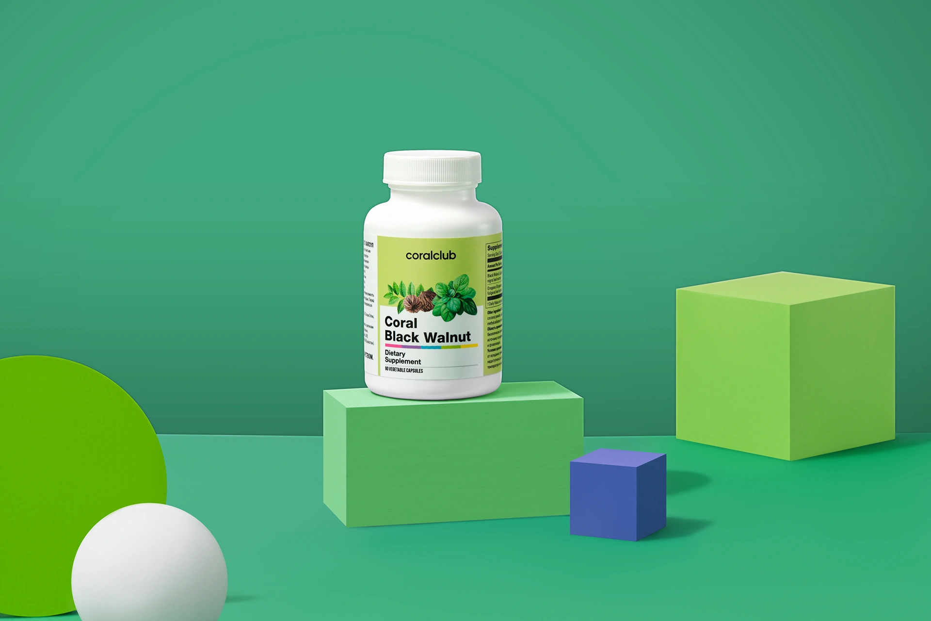 Ekstrakt z liści orzecha czarnego (Juglans nigra) 300 mg, Ekstrakt z liści Oregano (Origanum Vulgare) 50 mg; substancje pomocnicze: celuloza mikrokrystaliczna, proszek kokosowy, hypromeloza, woda. Nie zawiera sztucznych aromatów, glutenu, soi.